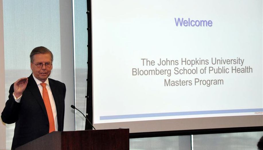 While waiting for Mr. Burrell, students had the opportunity to meet John O’Brien (twitter:@drjmob), a 2006 JHSPH MPH graduate who, after spending a number of years working “on the Hill”, is now CareFirst’s VP of Public Policy. Once Mr. Burrell arrived at the session, he provided his Hopkins guests with his candid assessment of the seriousness of the problems behind the Heath Insurance Exchanges and the ACA in general. He anticipates that what lies ahead are significant price increases in the insurance market. Yet, Mr. Burrell concluded his presentation on an optimistic note stating that the problems in healthcare are solvable. He referred to some innovative strategies for controlling health care costs through incentive-based product design, making specific reference to CareFirst’s success with patient centered medical homes. (This success was corroborated the following week when MHA students met with the Dr. George Lowe, Medical Director of Mercy Medical’s Lutherville Physician Practice which served as a pilot for CareFirst’s PCMH.) Before rushing back to prepare for his Tuesday meeting with Governor O’Malley, Mr. Burrell encouraged students to start their careers pursuing a purpose that is bigger and more important than themselves or money.