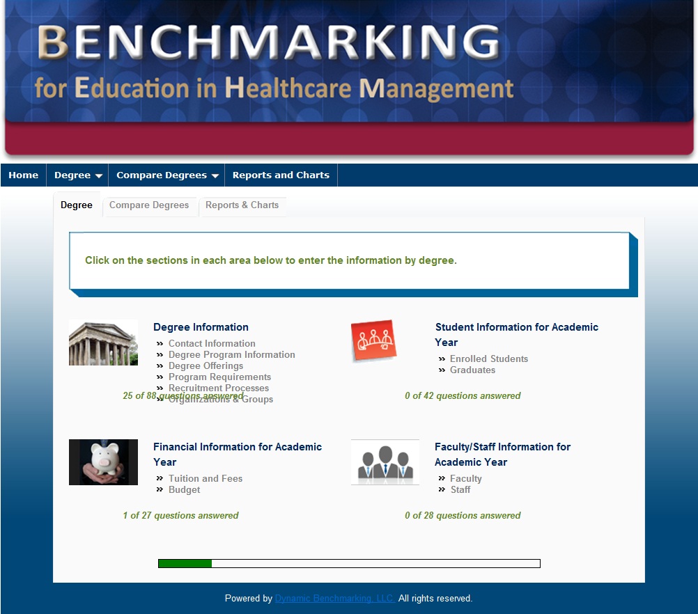 This new platform, which will be called Benchmarking for Healthcare Management Education (BEHM), will be available for free to all AUPHA Full, Associate Candidate and Associate member programs. Via the platform, programs will be able to submit their annual program survey information, then compare the data you’ve supplied to the data supplied by other programs that meet a specific search criteria. The minimum number of peers against which a program can compare itself has not yet been finalized by the task force developing the platform, but will likely be 7-9 which is the standard in this type of benchmarking platform.